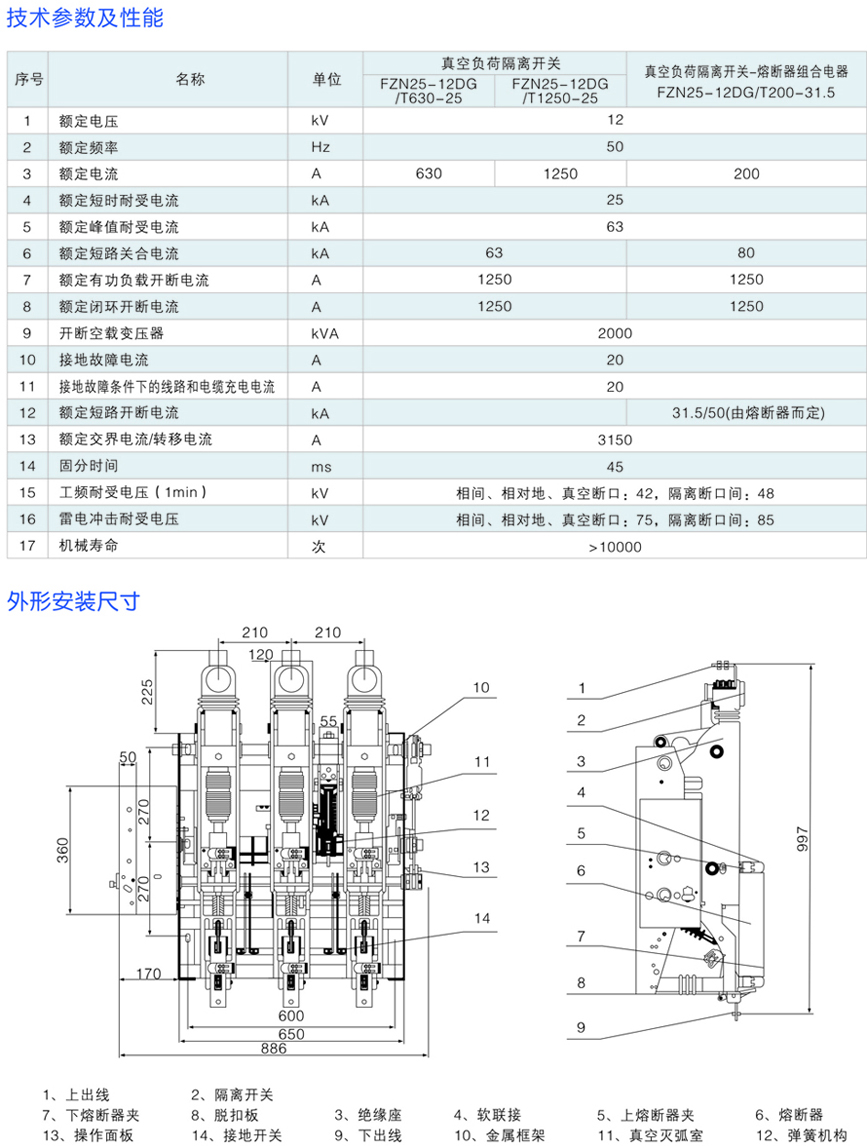 FZ(R)N25-12DG/125-31.5戶內(nèi)高壓真空負(fù)荷隔離開關(guān)