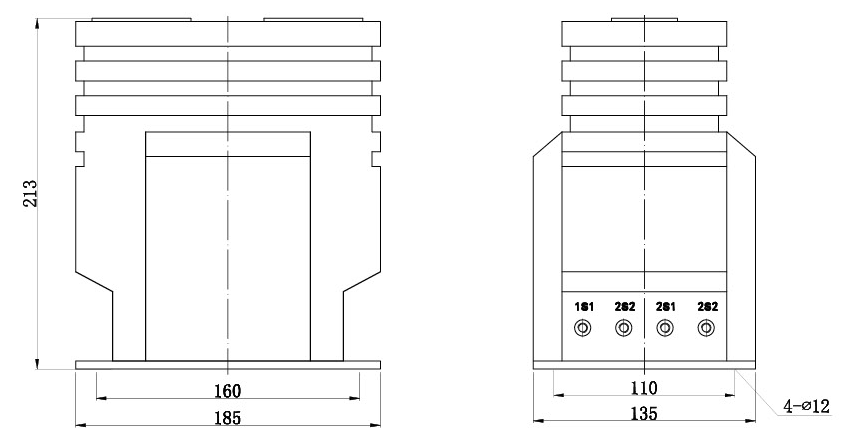 本型電流互感器為環(huán)氧樹脂真空澆注全封閉支柱式結(jié)構(gòu), 主要適用于額定頻率為50Hz或60Hz, 額定電壓10kV及以下電力系統(tǒng)中作電能計(jì)量、 電流測(cè)量和繼電保護(hù)用。