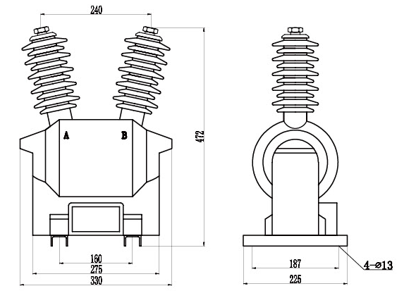 本型電壓互感器為環(huán)氧樹脂真空澆注全封閉單相戶外結構, 主要適用于額定頻率為50Hz或60Hz , 額定電壓10kV及以下電力系統(tǒng)中作電能計量、 電壓測量用。