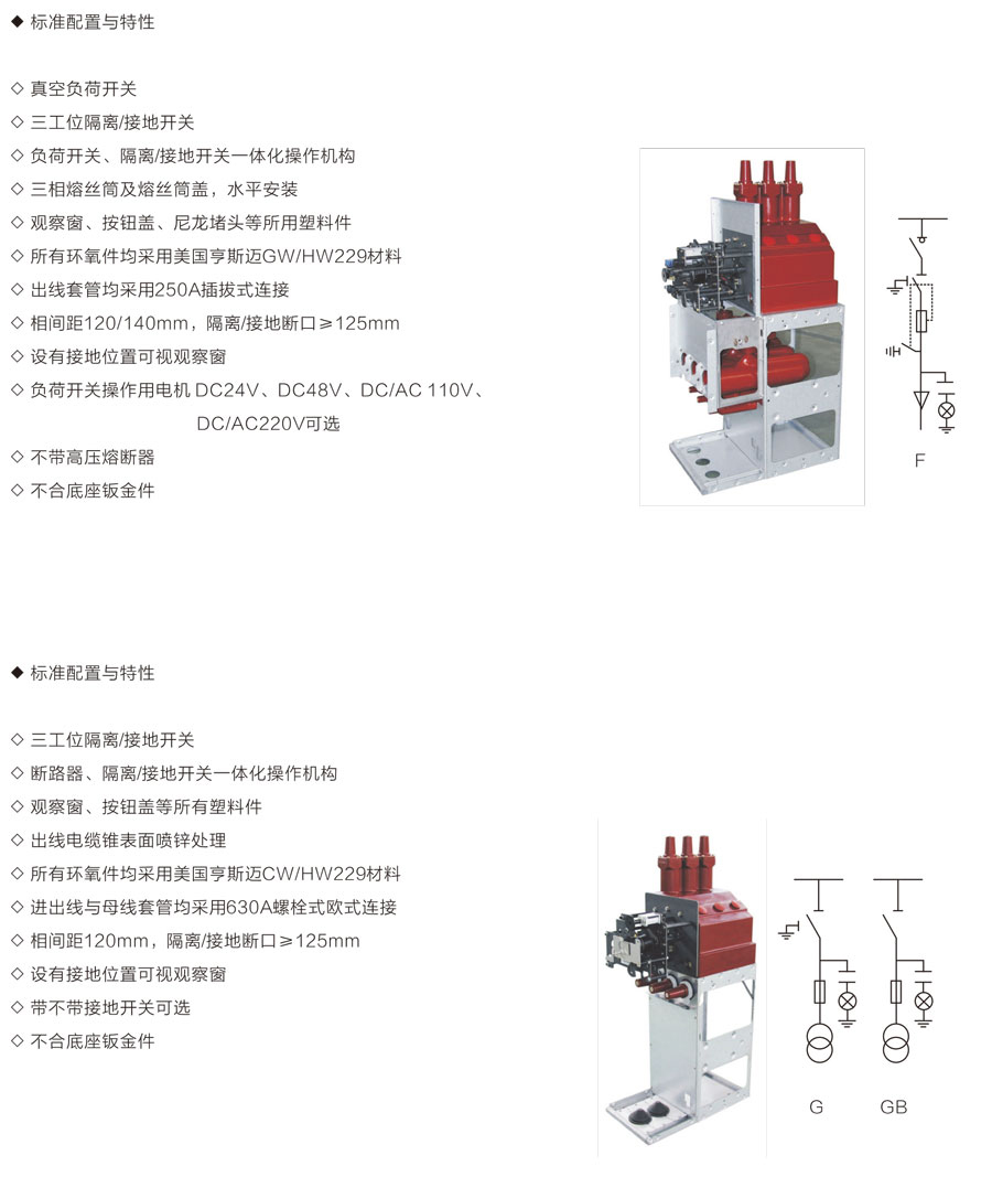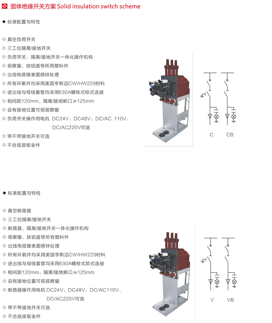 YLGM6-12系列固體絕緣拒,是一種全絕緣、全密封、免維護(hù)的固體絕緣真空開(kāi)關(guān)設(shè)備。所有高壓帶電部分均用絕緣性能優(yōu)良的環(huán)氧樹(shù)脂材料澆注成型,將真空滅弧室、主導(dǎo)電回路、絕緣支撐等有機(jī)結(jié)合為一整體,功能單元通過(guò)全絕緣固體匯流母線連接。因此, 整個(gè)開(kāi)關(guān)設(shè)備不受外部環(huán)境影響,可確保設(shè)備運(yùn)行的可靠性和操作人員的安全性。