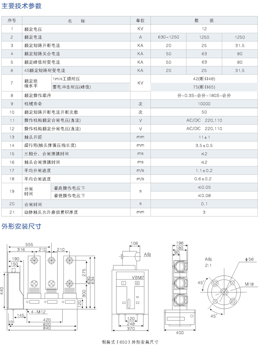 ZN63(VBM7)-12側裝式戶內真空斷路器