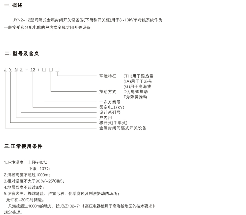 JYN2-12型間隔式金屬封閉開(kāi)關(guān)設(shè)備